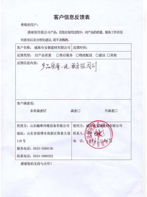 山東瀚尊冷暖設備有限公司坐落在美麗的齊國古都---淄博,是一家以換熱(冷凝)產品研發、生產、營銷為一體的企業;自2008年以來,通過與中外知名熱力設備制造商合作以及自主探索和創新,于2010年成功研制生產出了公司第一臺螺旋纏繞管式換熱器;同時,公司依托自身強大的技術力量和研發能力,于2016年成功研制生產無死角無菌級雙管板式換熱器,近年來,公司努力走在中國換熱器行業的前列,致力于創造民族品牌,為用戶提供專業技術支持與服務......